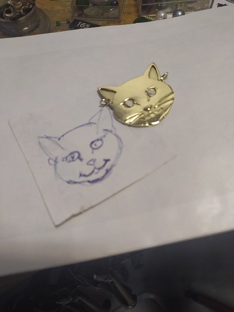 Von der Zeichnung bis zur Vollendung eines Katzenkopfes in Gold
